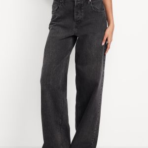 Mid-Rise Slouchy Wide-Leg Jeans: Low-slung and laid back with a long silhouette.mid-rise waist that’s low slung on the hips, hidden button fly, wide leg puddles at hem, #805772