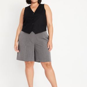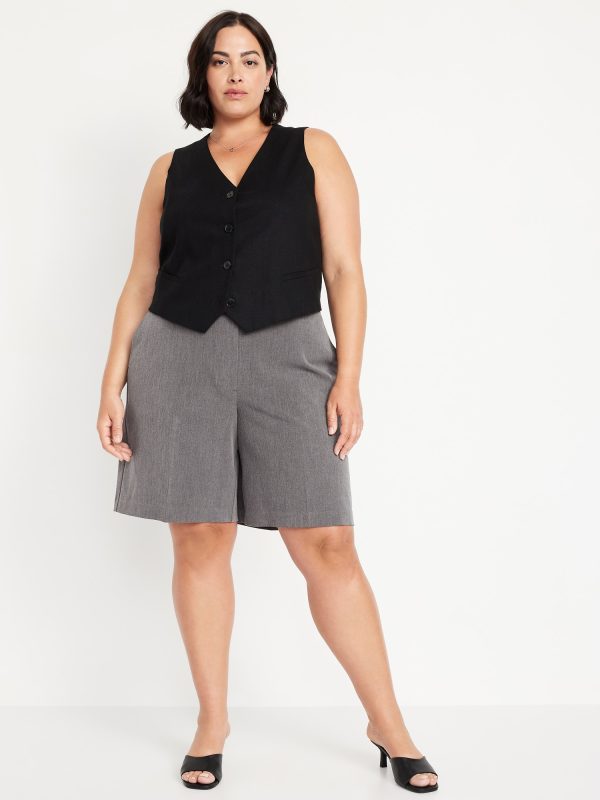 Mid-Rise Taylor Bermuda Shorts — 10-inch inseam: button-front waistband, belt loops, creased leg, zip fly, diagonal front pockets, back right welt pocket, #749153