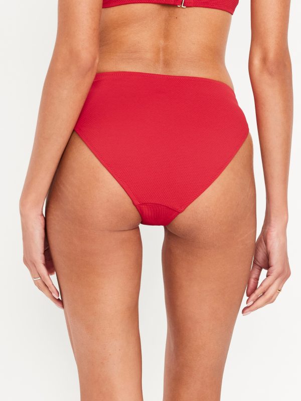 Mid-Rise Textured Bikini Swim Bottoms