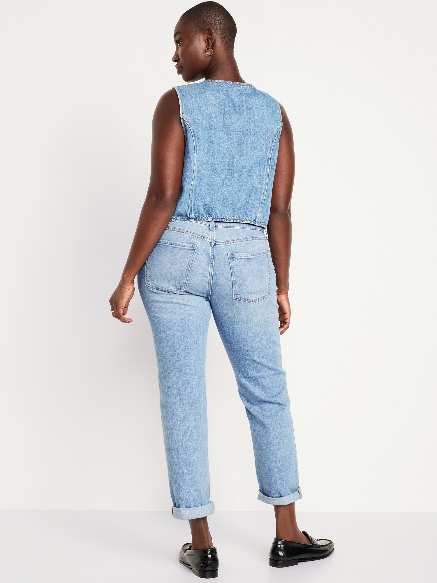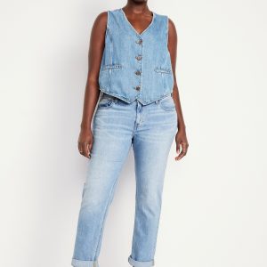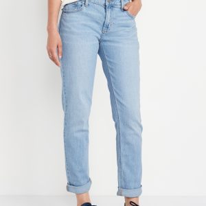 Mid-Rise Wow Boyfriend Straight Jeans: A slouchy straight leg at a jaw-dropping price.mid-rise waist, button front, belt loops, zip fly, front scoop pockets, back patch pockets, straight leg, cuffs can be rolled for boyfriend styling, #732591