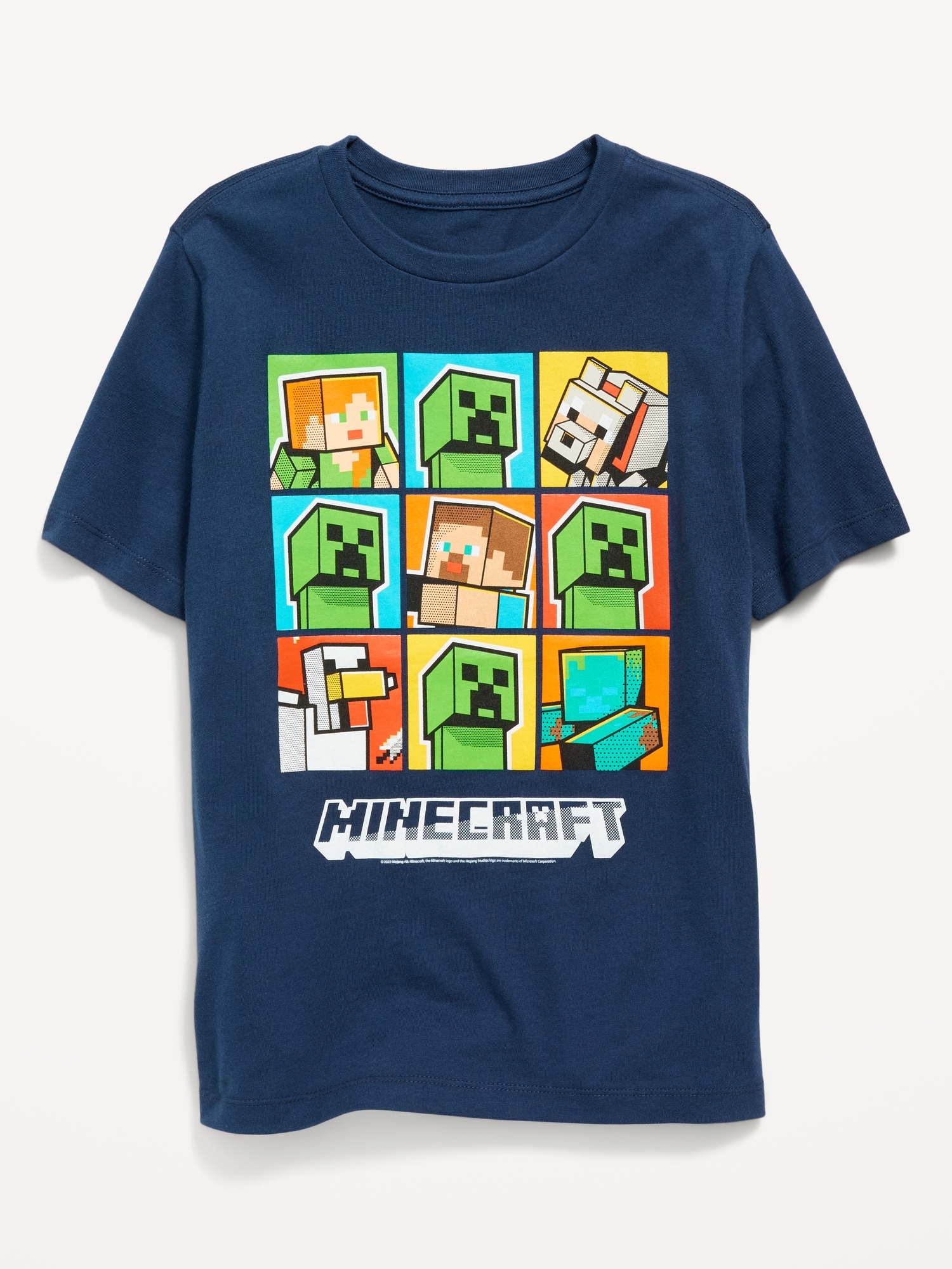 Minecraft™ Gender-Neutral Graphic T-Shirt for Kids: crew neck, short sleeves, licensed graphic, ©2022 Mojang AB. All Rights Reserved. Minecraft, the Minecraft logo and the Mojang Studios logo are trademarks of the Microsoft group of companies., #415469