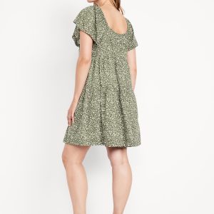 Mini Floral Swing Dress: square elastic neckline, flutter sleeves, tiered seams, shirred detail, #809629