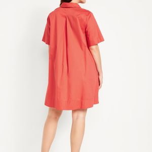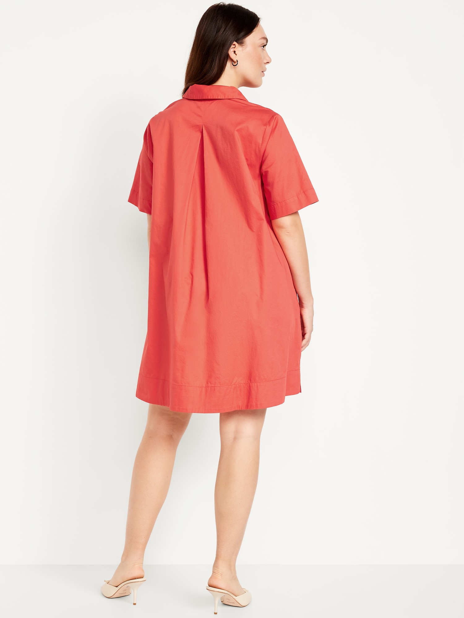 Mini Swing Shirt Dress: spread collar, elbow-length sleeves, covered button placket, vertical striped print, vented sides, #705705
