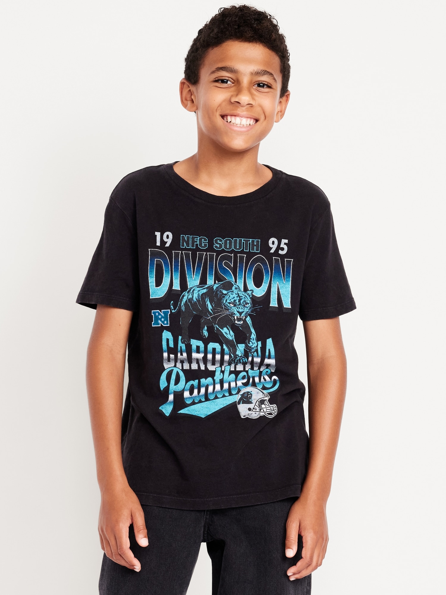 NFL™ Carolina Panthers™ Gender-Neutral Graphic T-Shirt for Kids: crew neck, short sleeves, licensed graphic, ©2025 NFL Enterprises LLC. NFL and the NFL shield design are registered trademarks of the National Football League., #787985