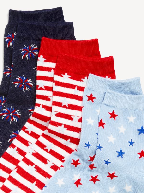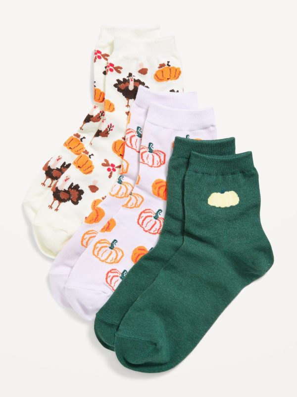 Novelty Quarter Crew Socks 3-Pack for Women: includes 3 pairs of quarter crew socks, rib-knit openings, notched seams at toe and heel, #609246