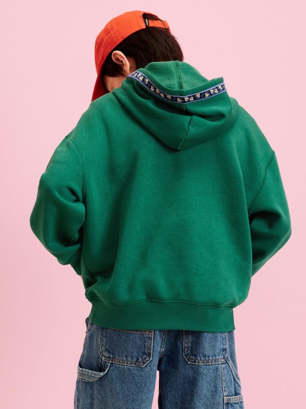 Old Navy x Disney© Mickey Mouse Oversized Pullover Hoodie for Boys: built-in hood, long sleeves, drop shoulders, kangaroo pocket, small-scale licensed graphic at chest, large-scale licensed graphic at back, banded hem, easy pull-over style, Disney©, #761760