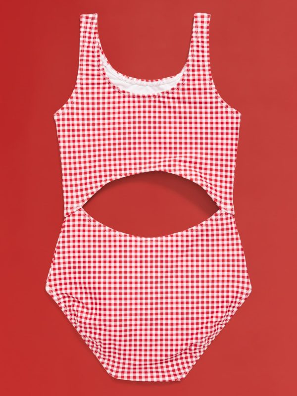 Old Navy x Disney© Minnie Mouse Cutout One-Piece Swimsuit for Girls: Two icons, together at last. Browse the collection for the whole fam.square neckline, wide straps, dome-shape cutout at front and back, all-over pattern, licensed graphic, Disney©, #761693