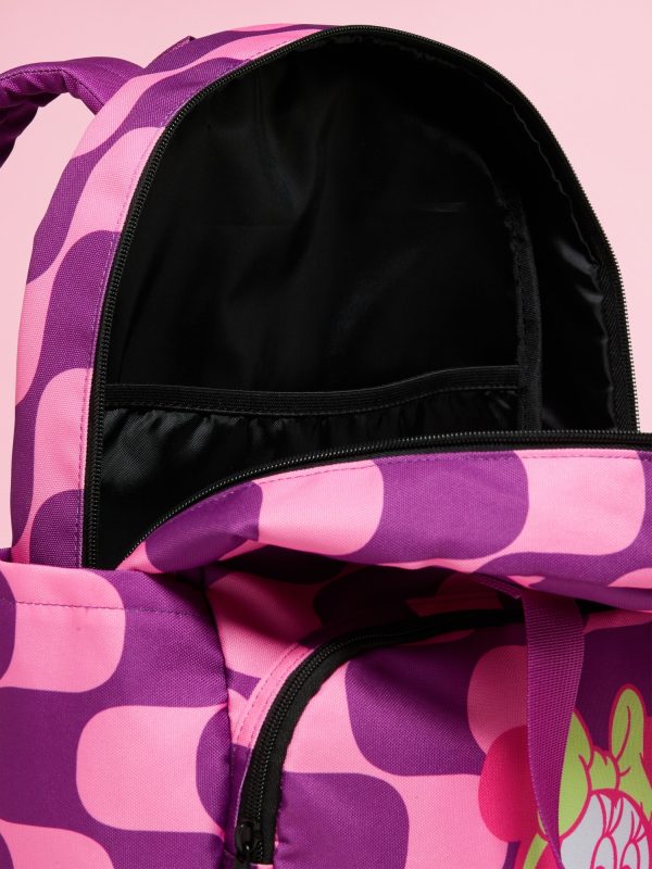 Old Navy x Disney© Minnie Mouse Gender-Neutral Backpack for Kids: zip-top closure, top handle, exterior zippered pouch compartment, licensed graphic, shoulder straps, open side pockets, Disney©, #791292