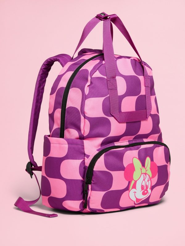 Old Navy x Disney© Minnie Mouse Gender-Neutral Backpack for Kids: zip-top closure, top handle, exterior zippered pouch compartment, licensed graphic, shoulder straps, open side pockets, Disney©, #791292
