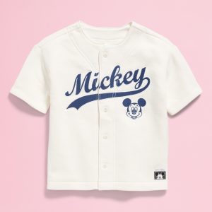 Old Navy x Disney© Oversized Mickey Mouse Baseball Shirt for Toddler Boys: crew neck, short sleeves, licensed character graphic, full-button front, Disney©, #763018