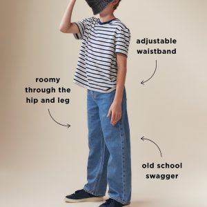 Original Baggy Non-Stretch Jeans for Boys: interior adjustable waistband, sizes 5-8 snap-button closure, regular button closure sizes 10-20, zip fly, #416516