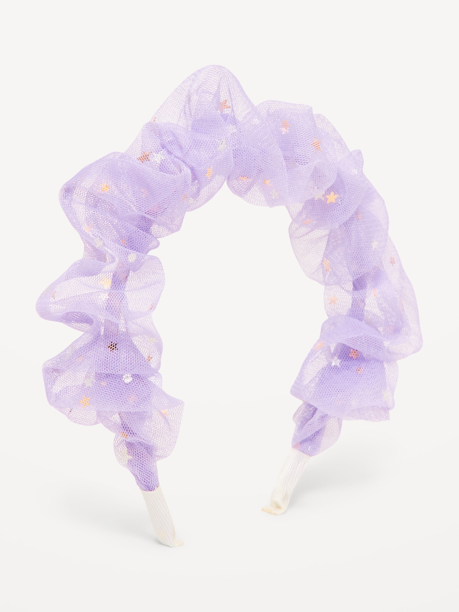 Outtek⢠Sparkly Tulle Headband for Toddler Girls: ruffed tulle, all-over sparkly pattern, intended for children 3 yrs and up, WARNING: choking hazard – small parts., #804378