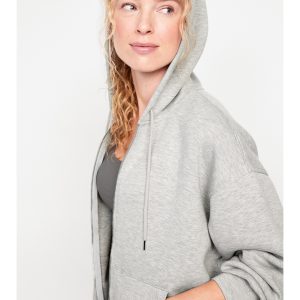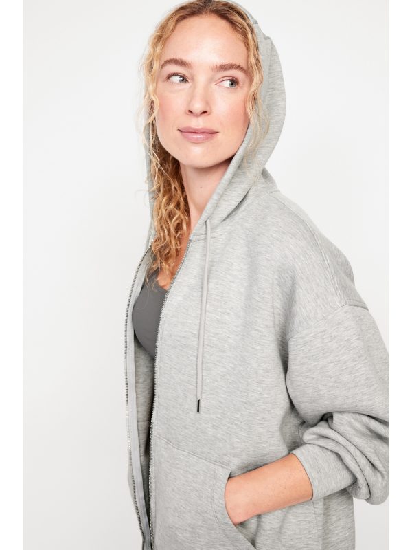 Oversized Bounce Fleece Zip Tunic Hoodie Sweatshirt: Featuring Bounce Fleece. A smooth, cooling finish that feels good and looks chic everywhere you go.drawstring hood, drop-shoulder sleeves, full-zip front, hand-warming pockets, breathable, #569981