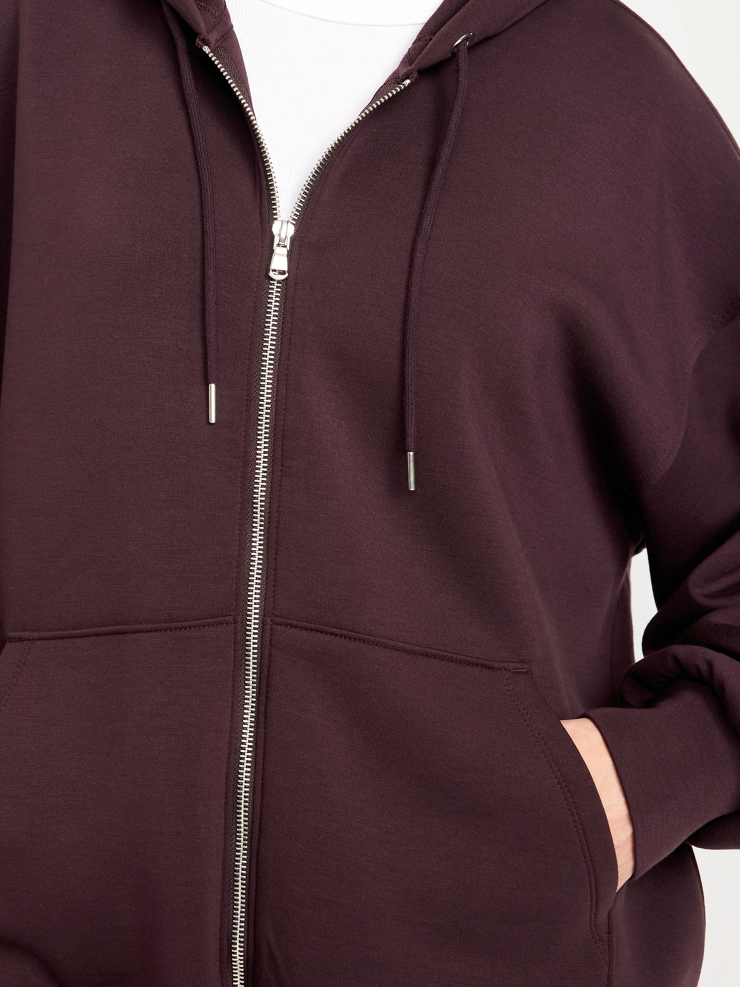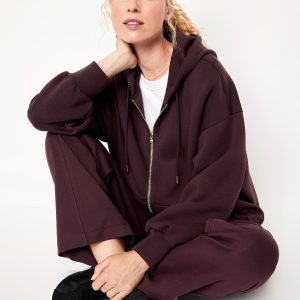 Oversized Bounce Fleece Zip Tunic Hoodie Sweatshirt: Featuring Bounce Fleece. A smooth, cooling finish that feels good and looks chic everywhere you go.drawstring hood, drop-shoulder sleeves, full-zip front, hand-warming pockets, breathable, #569981