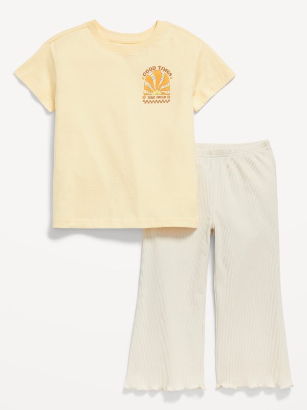 Oversized Graphic T-Shirt and Ribbed Flare Leggings Set for Toddler Girls: crew neck, short sleeves, graphic at front, coordinating leggings, elasticized waistband, lettuce edge hem, #762120