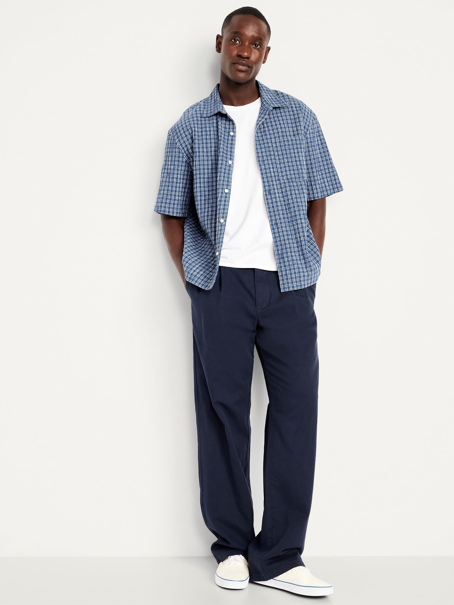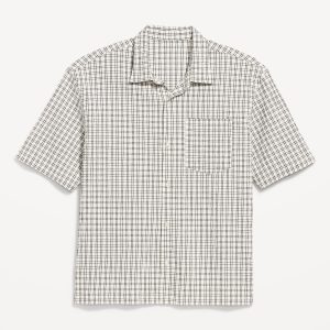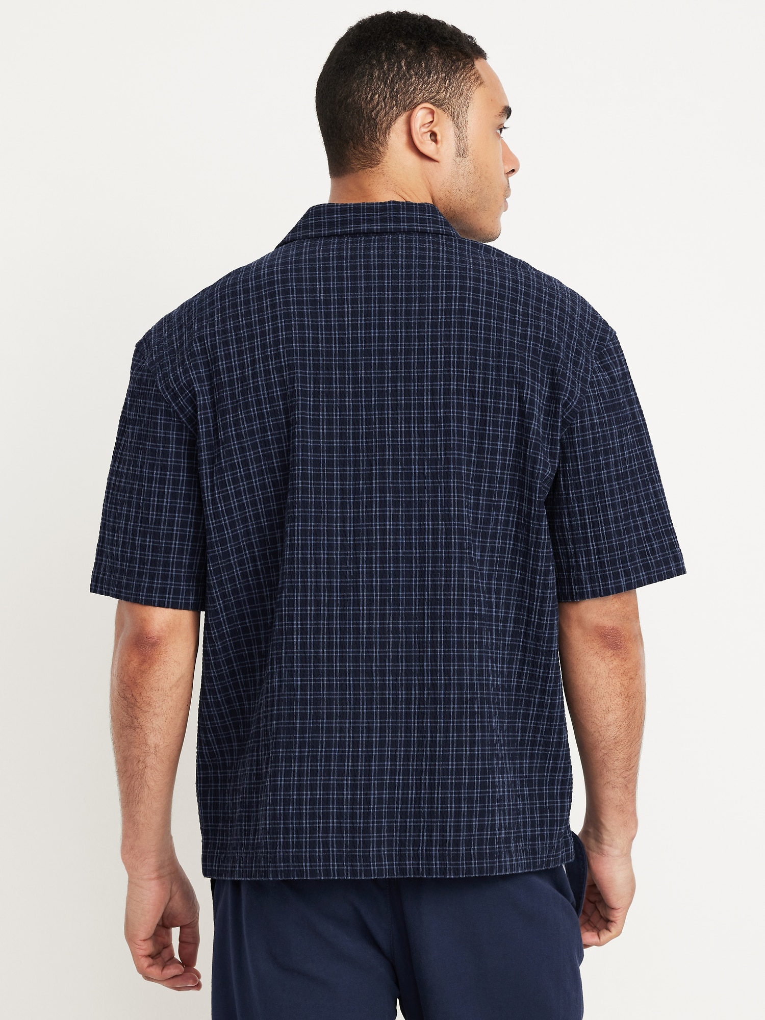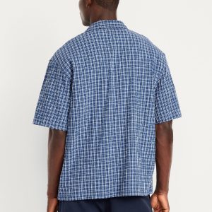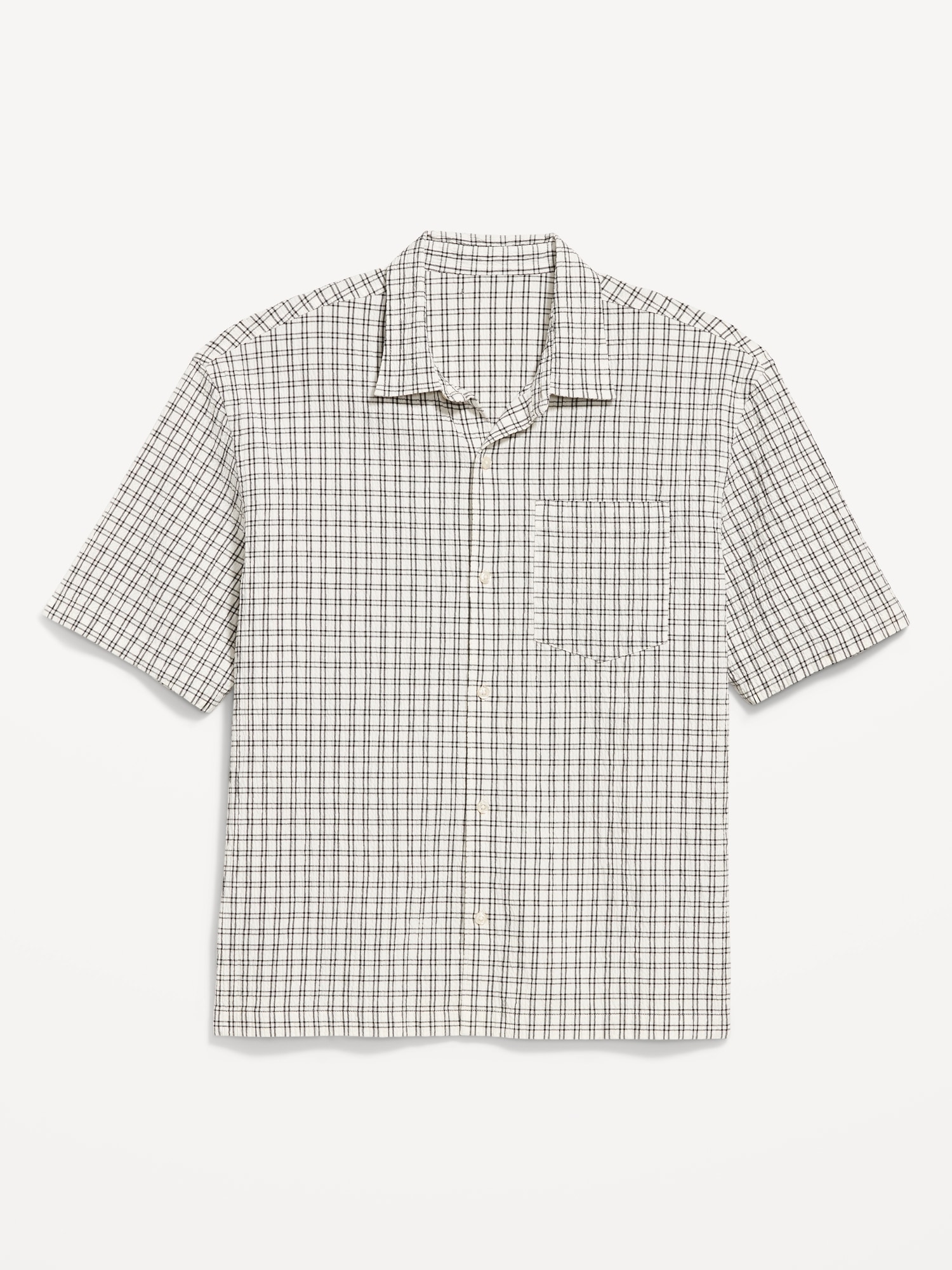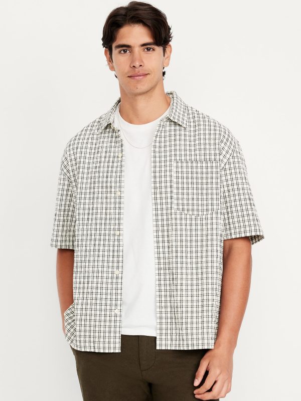 Oversized Heavyweight Shirt: spread collar, short sleeves, full-button front, patch chest pocket, #762362
