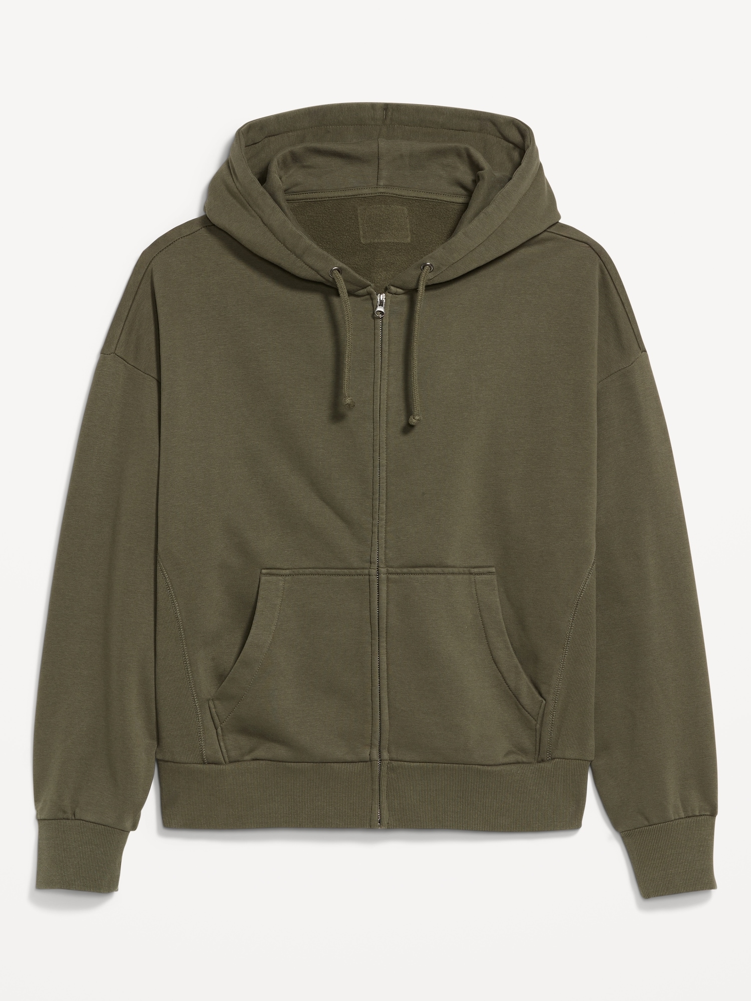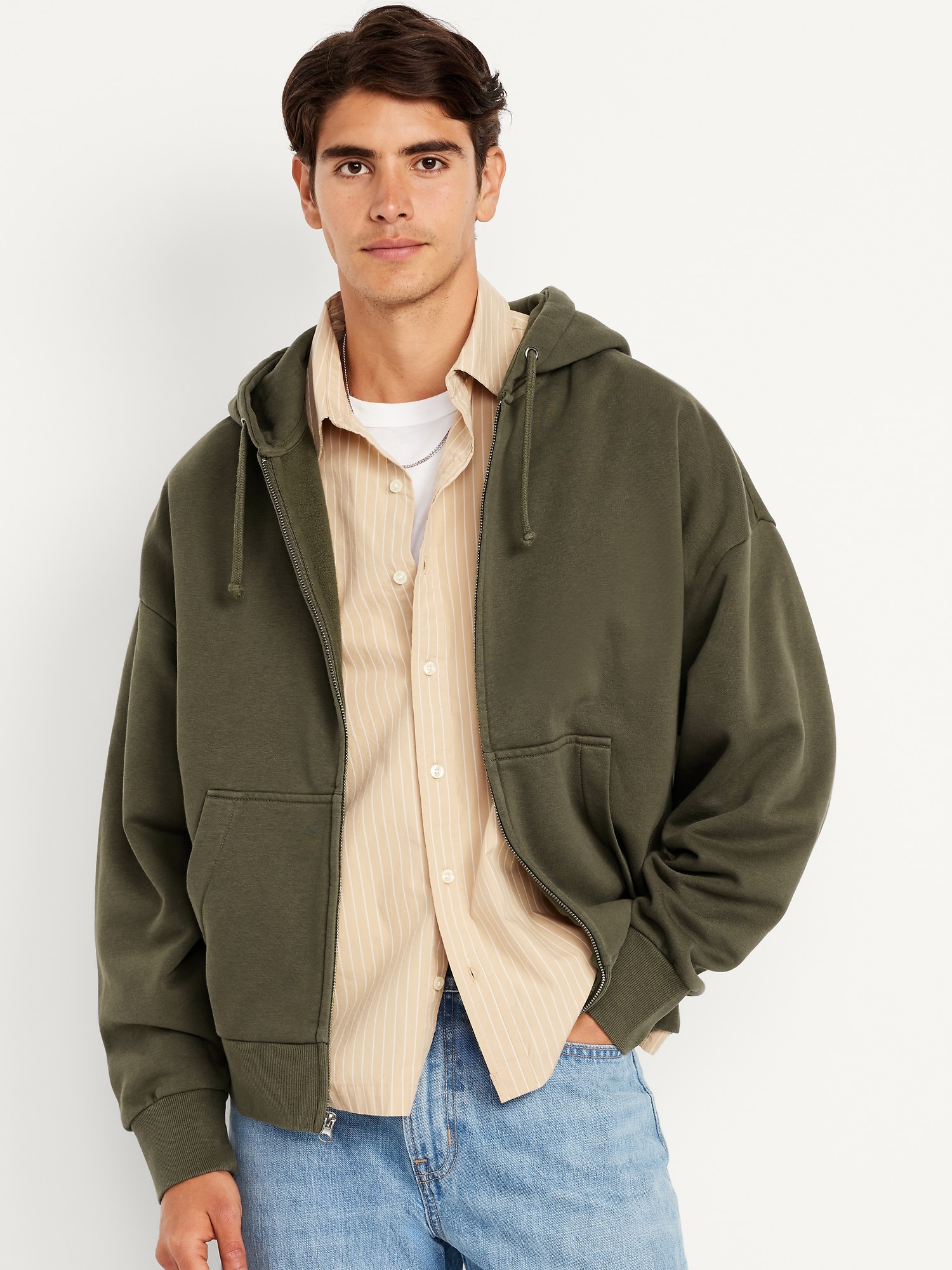 Oversized Heavyweight Zip Hoodie: drawstring hood, long sleeves, full-zip front, hand-warming pockets, rib-knit cuffs, hem and side panels, #787703