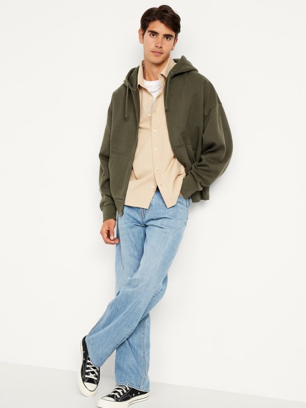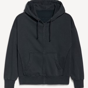 Oversized Heavyweight Zip Hoodie: drawstring hood, long sleeves, full-zip front, hand-warming pockets, rib-knit cuffs, hem and side panels, #787703
