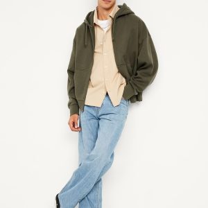 Oversized Heavyweight Zip Hoodie: drawstring hood, long sleeves, full-zip front, hand-warming pockets, rib-knit cuffs, hem and side panels, #787703
