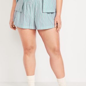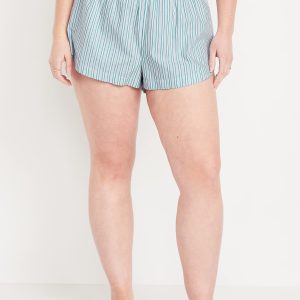 Oversized Poplin Pajama Shorts: elastic waistband, vented sides, prints vary, #707497