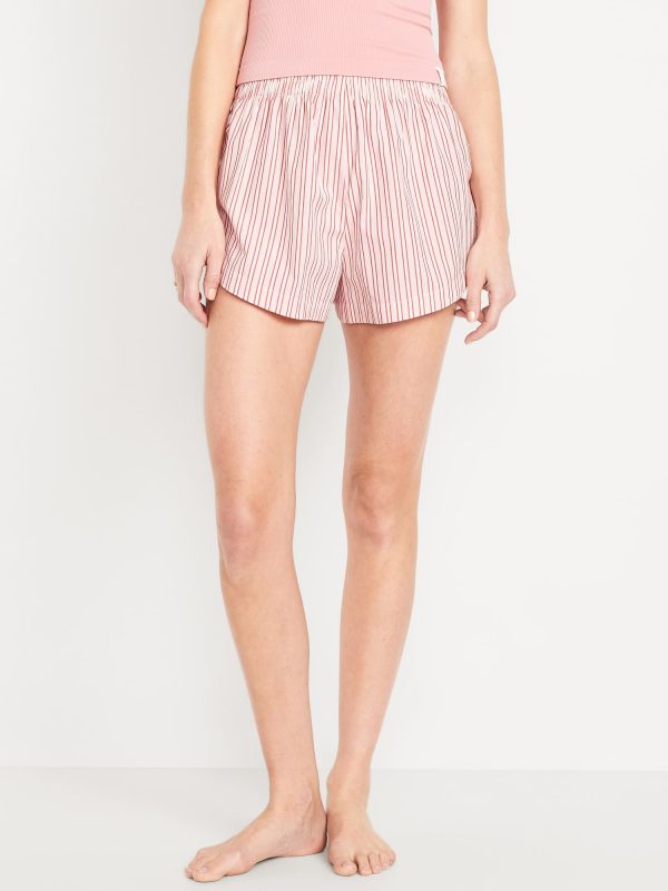 Oversized Poplin Pajama Shorts: elastic waistband, vented sides, prints vary, #707497