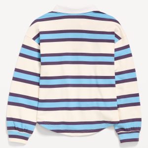 Oversized Rugby Polo Shirt for Girls: pointed collar, v neck, long wide sleeves, drop shoulders, rounded hem, #789714