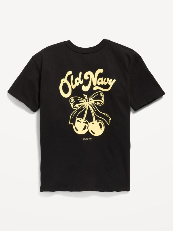 Oversized Short-Sleeve Logo-Graphic Raw-Edge T-Shirt for Girls: crew neck, short sleeves, drop shoulders, logo graphic, raw-edge hem, available exclusively online and at old navy outlet stores, #808557