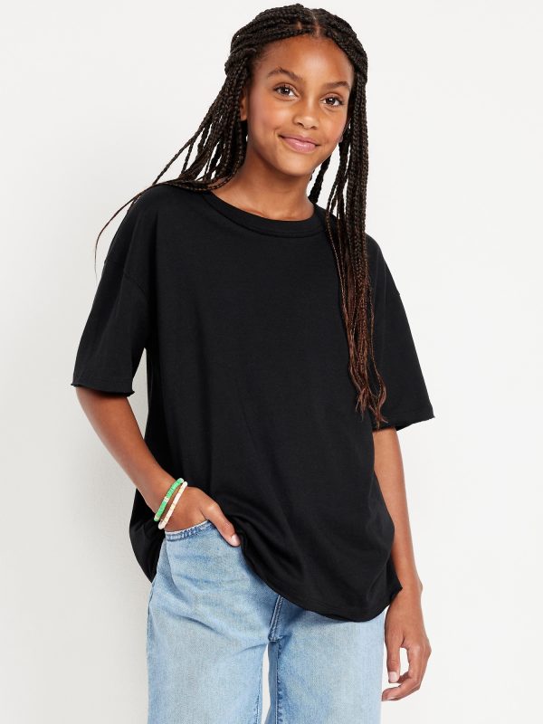 Oversized Short-Sleeve Raw-Edge T-Shirt for Girls