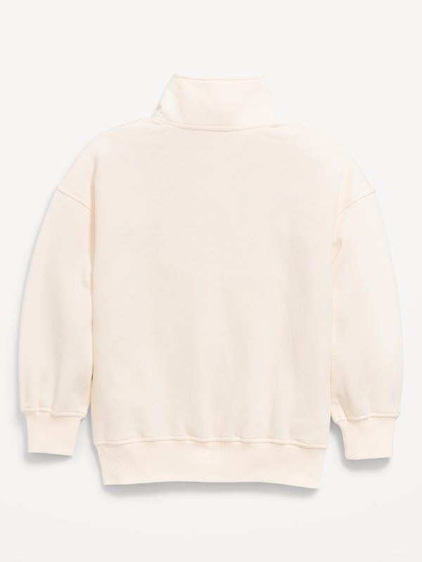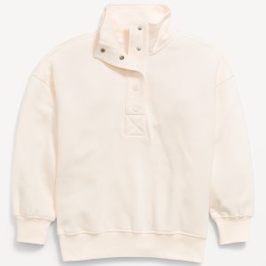 Oversized Snap-Button Sweatshirt for Girls: spread collar, half snap-button placket, long sleeves, drop shoulders, #798209