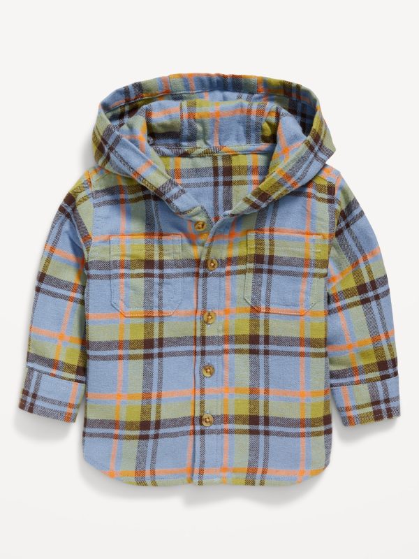 Plaid Hooded Shacket for Baby: built-in hood, long sleeves, patch pockets at chest, full length button placket, round hem, online exclusive, #801525