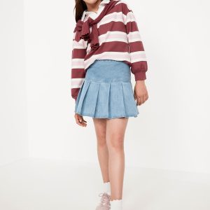 Pleated Jean Skirt for Girls: elasticized waistband, flared pleated skirt, #802945