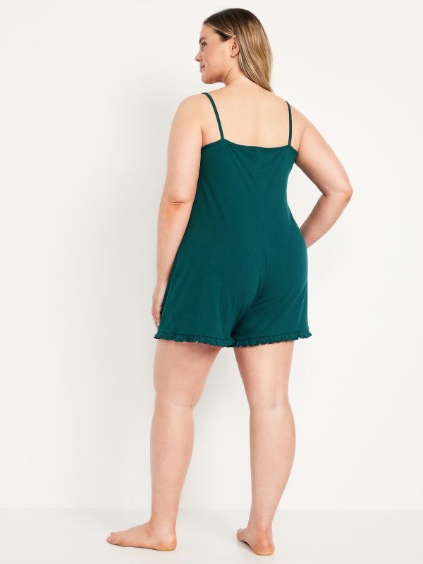 Pointelle Pajama Romper: spaghetti straps with bow accent, v-neck, ruffled hem, #808349