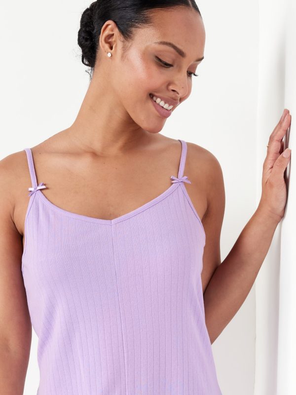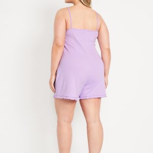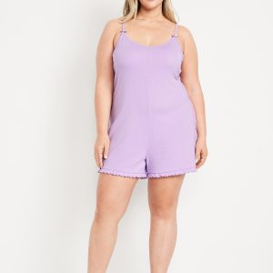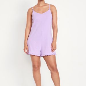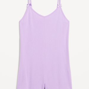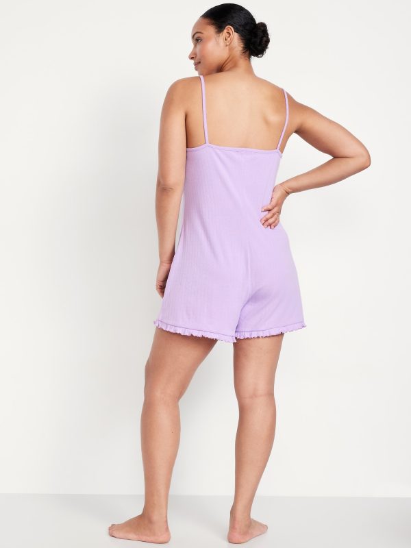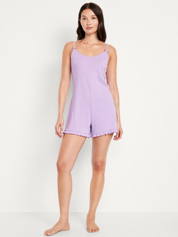 Pointelle Pajama Romper: spaghetti straps with bow accent, v-neck, ruffled hem, #808349