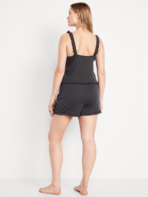 Pointelle Pajama Short Set: set includes cami sleep top and matching shorts, scoop neck with bow accent, ruffled straps, elastic-waist shorts with ruffled hem, #808329