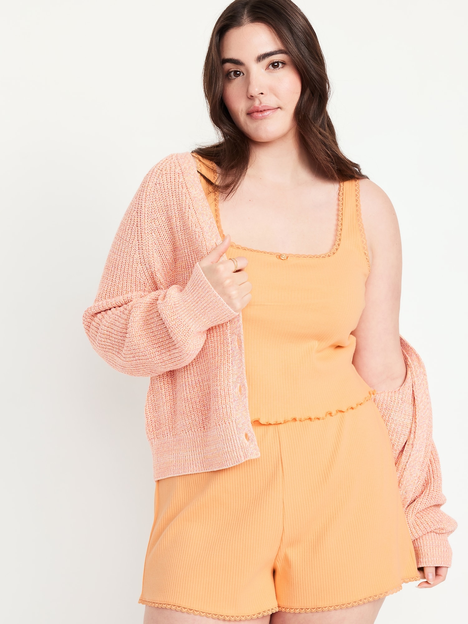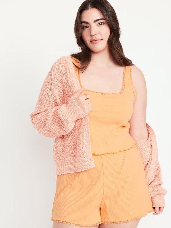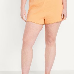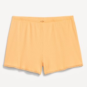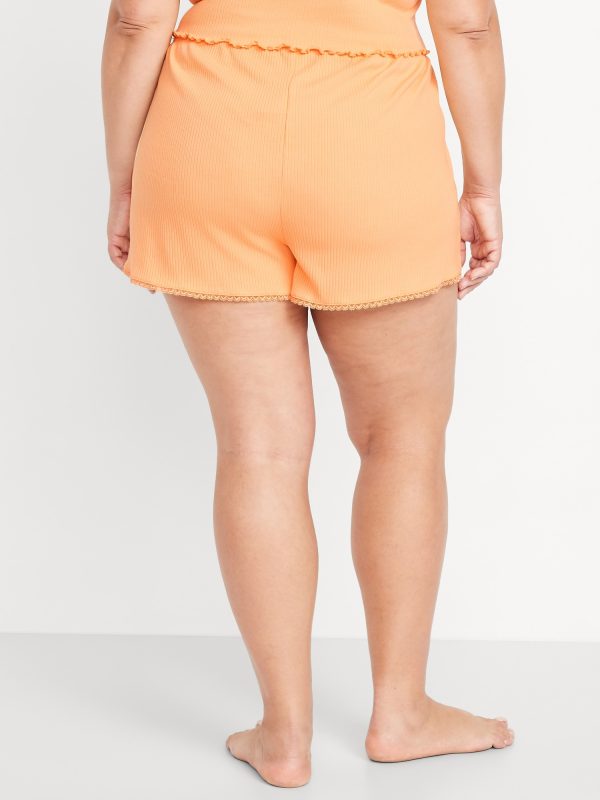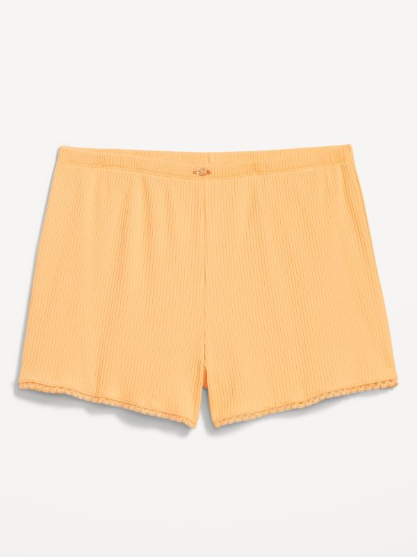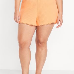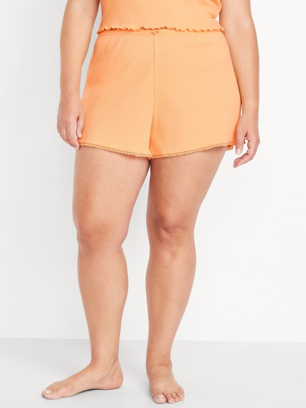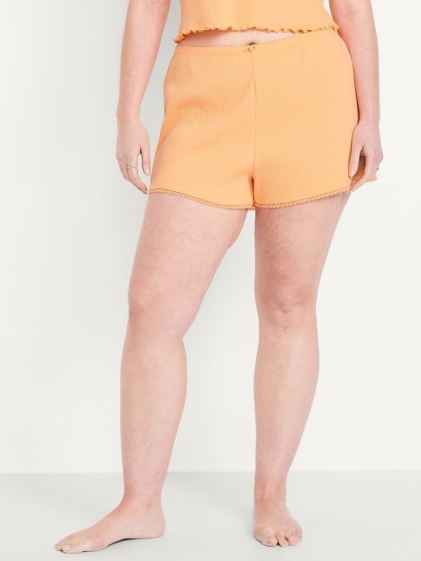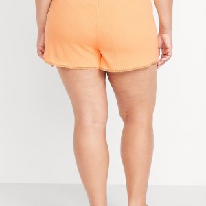 Pointelle Pajama Shorts: elasticized waistband, lace-trim hem, #707458