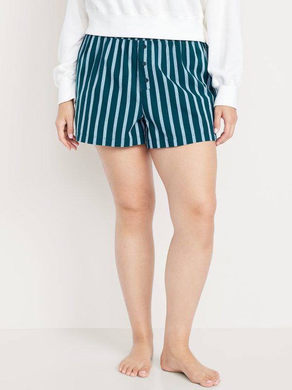 Poplin Boxer Pajama Shorts: elastic waistband, decorative button fly, plaid print, #798497
