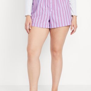 Poplin Boxer Pajama Shorts: elastic waistband, decorative button fly, plaid print, #798497