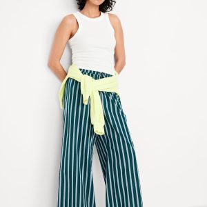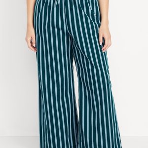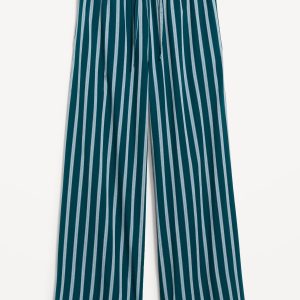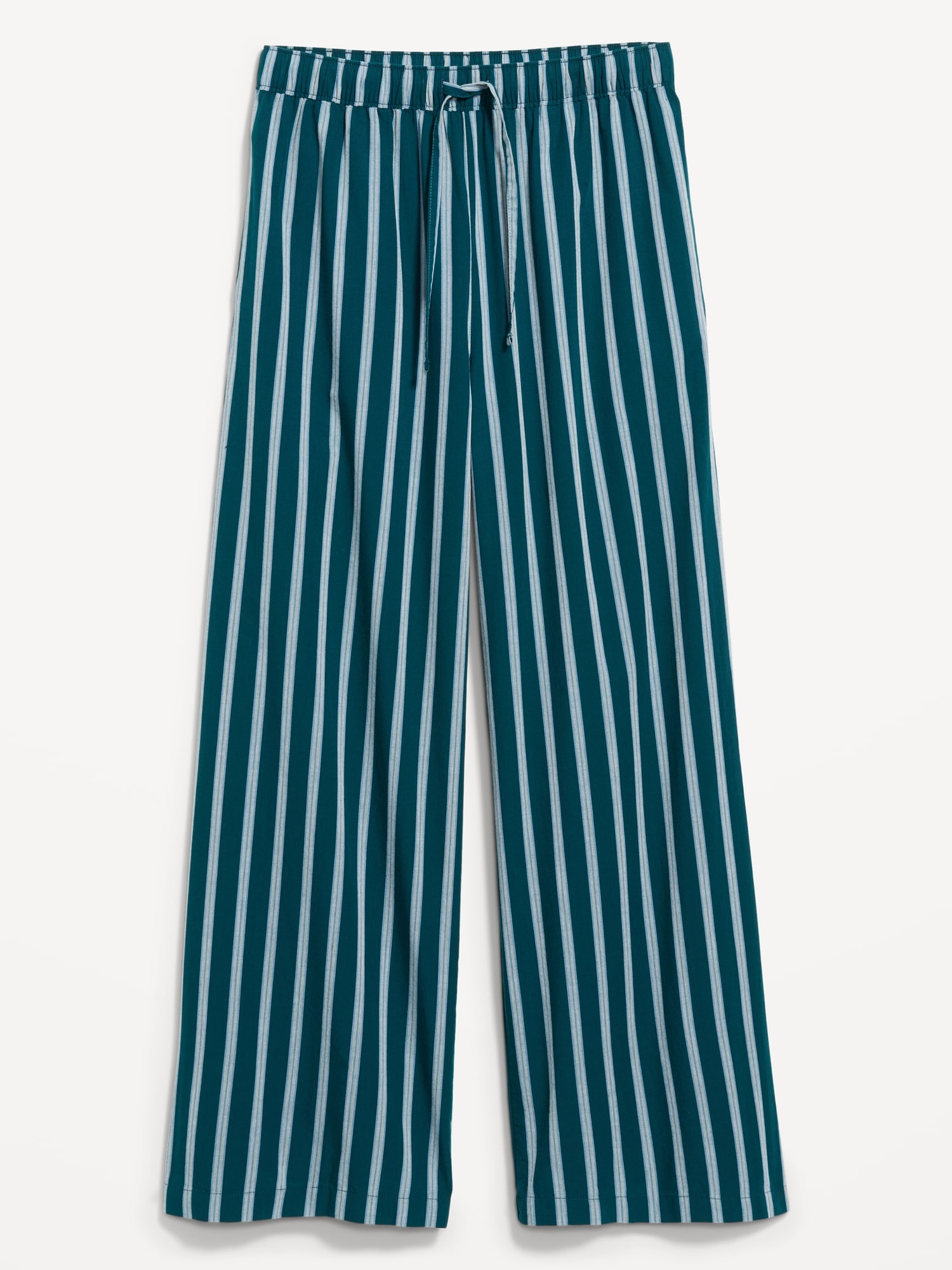 Poplin Wide-Leg Pajama Pants: Crisp, breathable cotton that’s classic for a reason.elastic-drawstring waistband, on-seam side pockets, plaid print, #798467