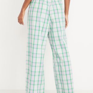 Poplin Wide-Leg Pajama Pants: Crisp, breathable cotton that’s classic for a reason.elastic-drawstring waistband, on-seam side pockets, plaid print, #798467