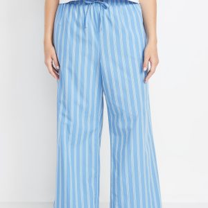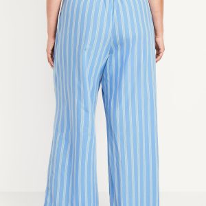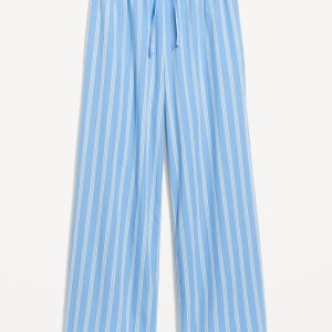 Poplin Wide-Leg Pajama Pants: Crisp, breathable cotton that’s classic for a reason.elastic-drawstring waistband, on-seam side pockets, striped print, #770007