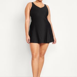 PowerSoft Athletic Dress: Featuring PowerSoft. Light compression meets a peachy-smooth, sweat-wicking fabric.v-neck, wide straps, shelf bra, go-dry wicks moisture, breathable, mini length, #662642
