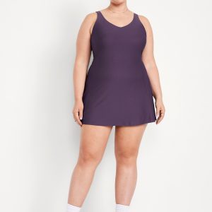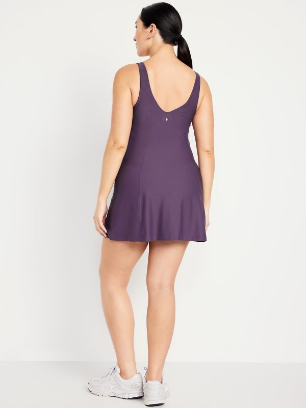 PowerSoft Athletic Dress: Featuring PowerSoft. Light compression meets a peachy-smooth, sweat-wicking fabric.v-neck, wide straps, shelf bra, go-dry wicks moisture, breathable, mini length, #662642