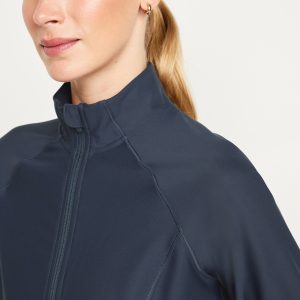 PowerSoft Full Zip: Featuring PowerSoft. Light compression meets a peachy-smooth, sweat-wicking fabric.mock neck, long sleeves, thumbhole cuffs, full-zip front, zip pockets, go-dry wicks moisture, #724598
