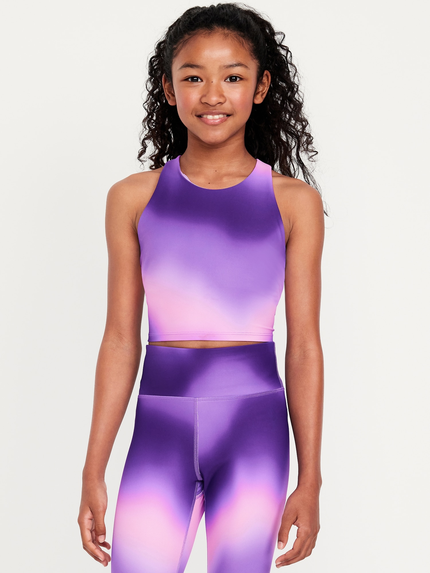 PowerSoft Longline Sports Bra for Girls: Made to keep up with all their shenanigans.scoop neck, wide shoulder straps, built-in shelf bra, elastic banded hem, #647193
