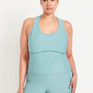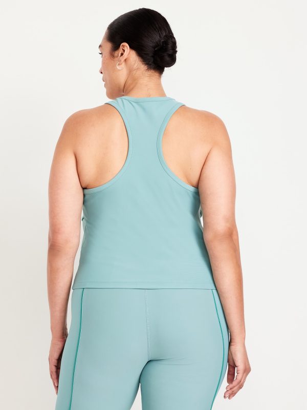PowerSoft Racerback Cropped Shell Tank: Featuring PowerSoft. Light compression meets a peachy-smooth, sweat-wicking fabric.scoop neck, wide straps, racerback, contrasting piping, go-dry wicks moisture, #749263