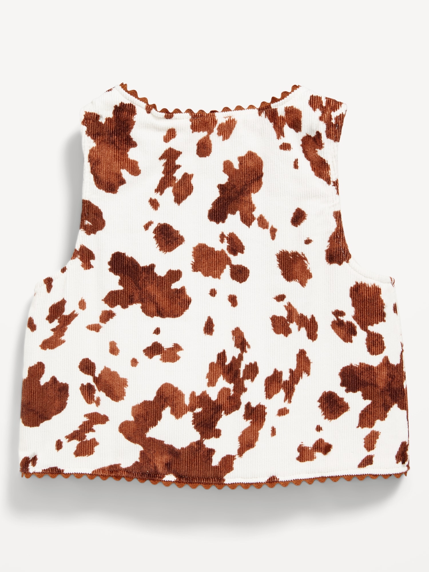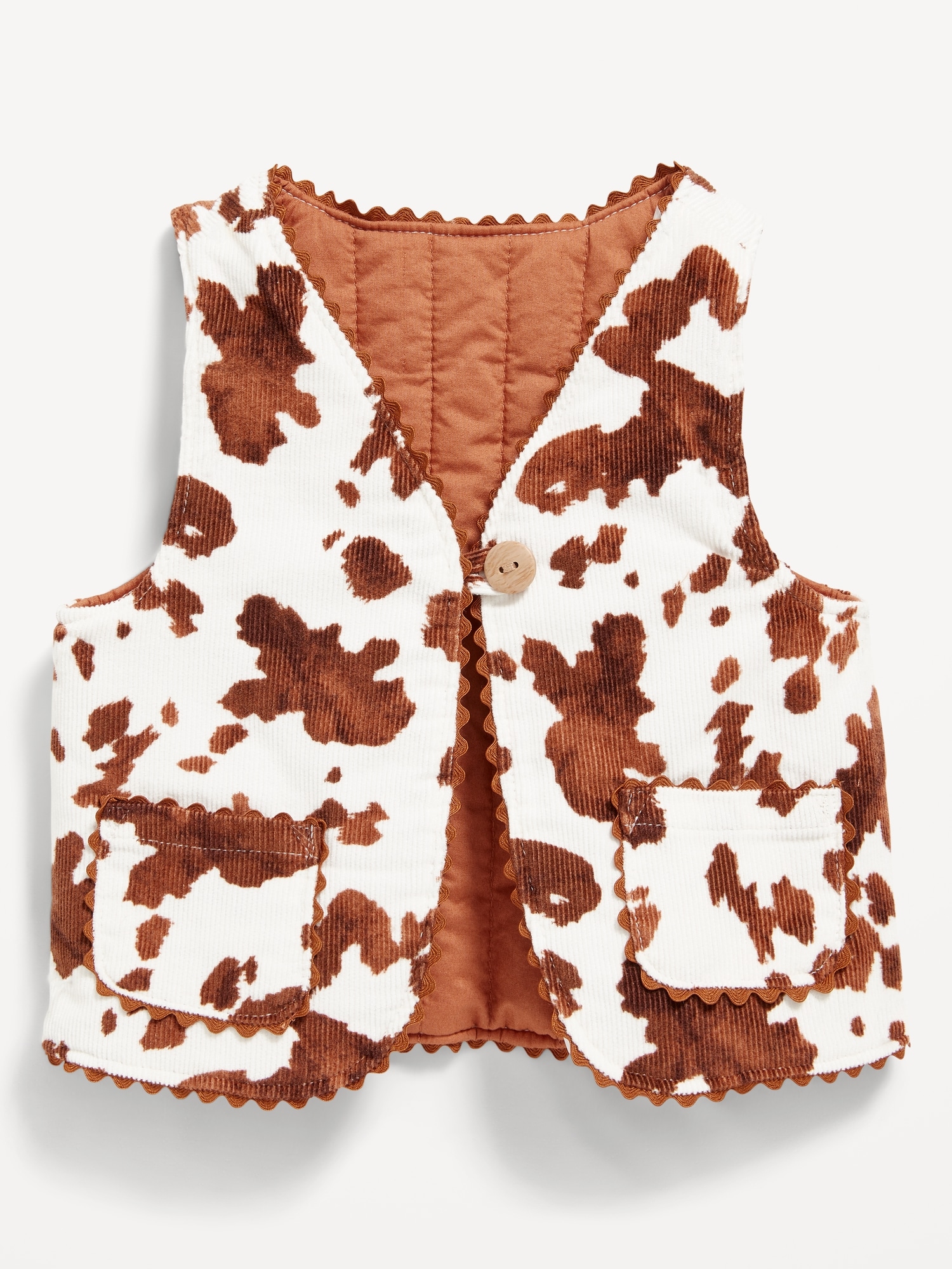Printed Corduroy Vest for Baby: v neck, sleeveless, button loop closure, patch pockets at hem, scallop edge trim, #802423