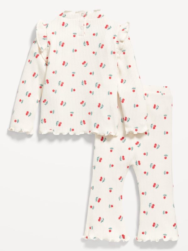 Printed Cozy Rib-Knit Ruffled Top and Pants Set for Baby