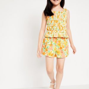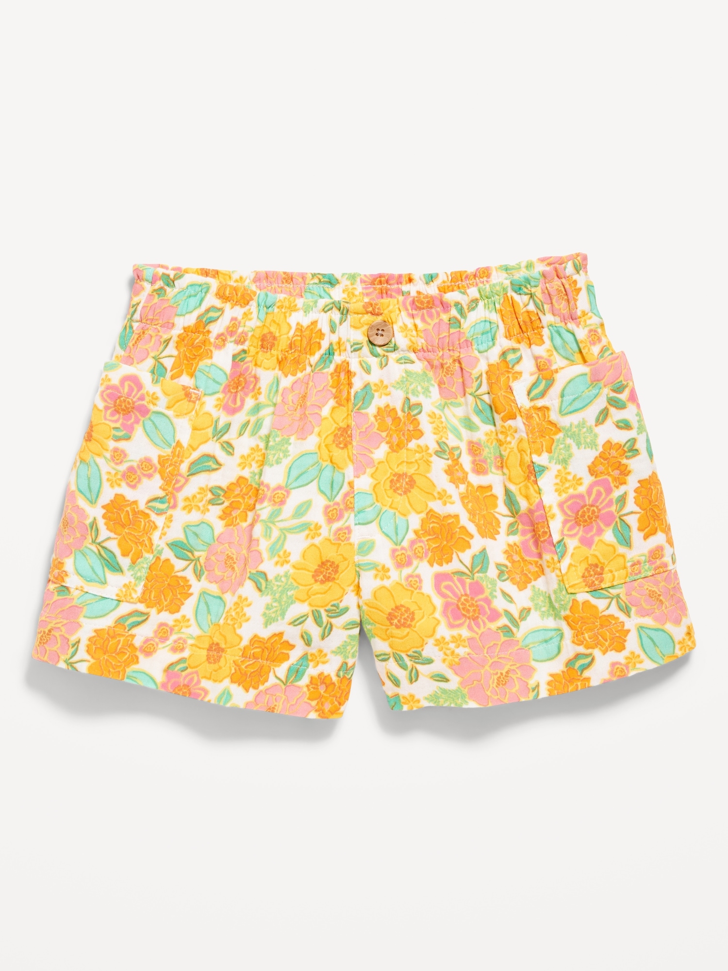 Printed Double-Weave Pull-On Utility Shorts for Girls