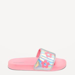 Printed Faux-Leather Pool Slide Sandals for Girls