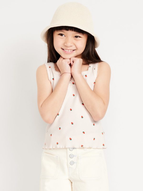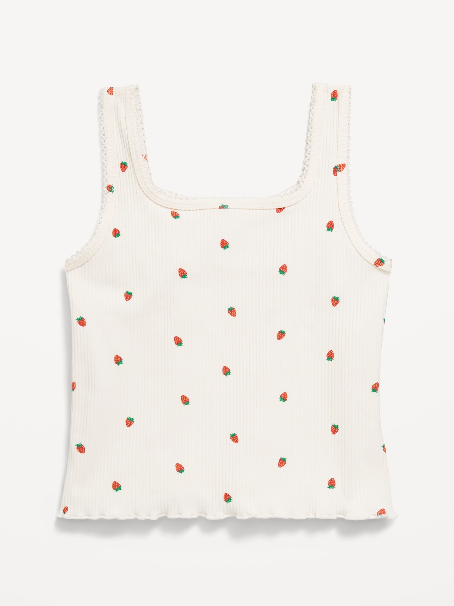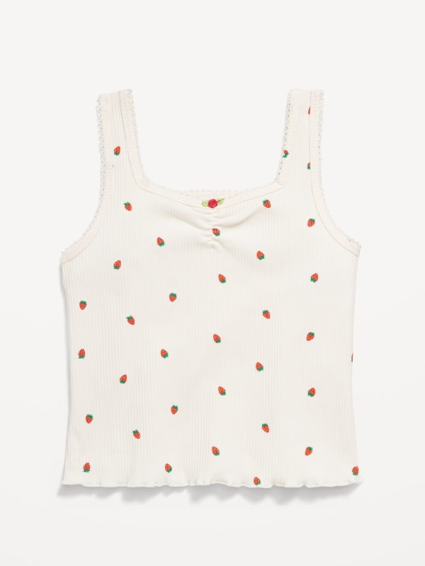 Printed Fitted Tank Top for Girls: sweetheart neckline, sleeveless, ruching at chest, lettuce edge hem, all-over print, #708323